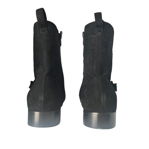 Découvrez les bottines BRENDA en daim et cuir, fabriquées à la main en Italie avec des lanières cloutées dorées et un talon de 2 cm. Profitez de leur confort, leur qualité et leur élégance pour compléter votre garde-robe.